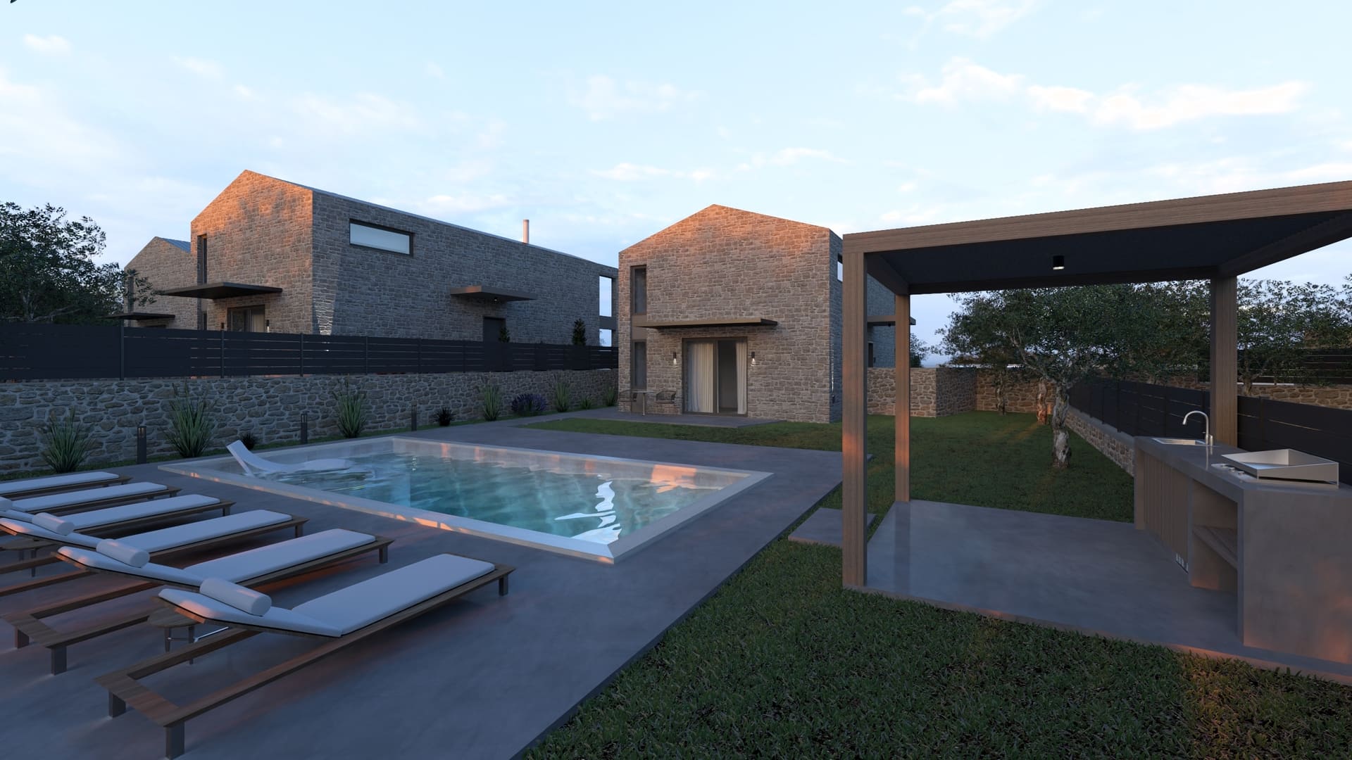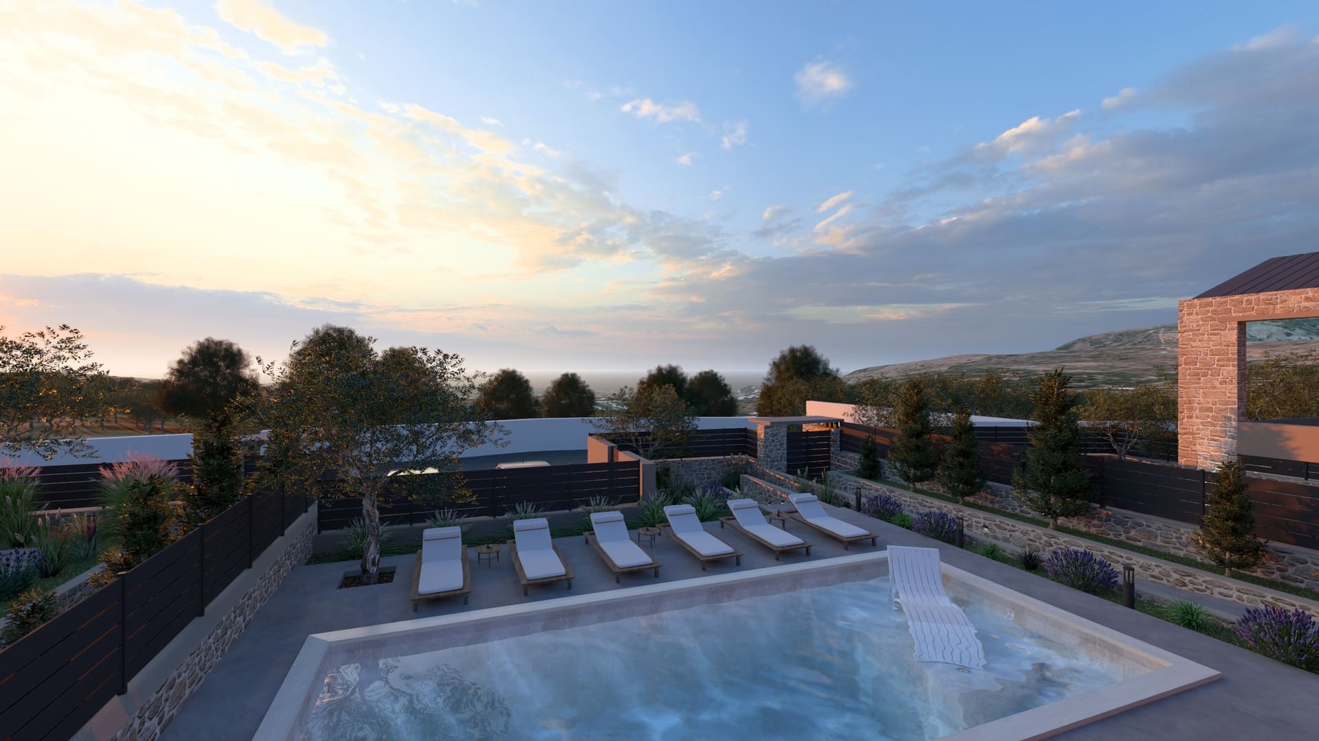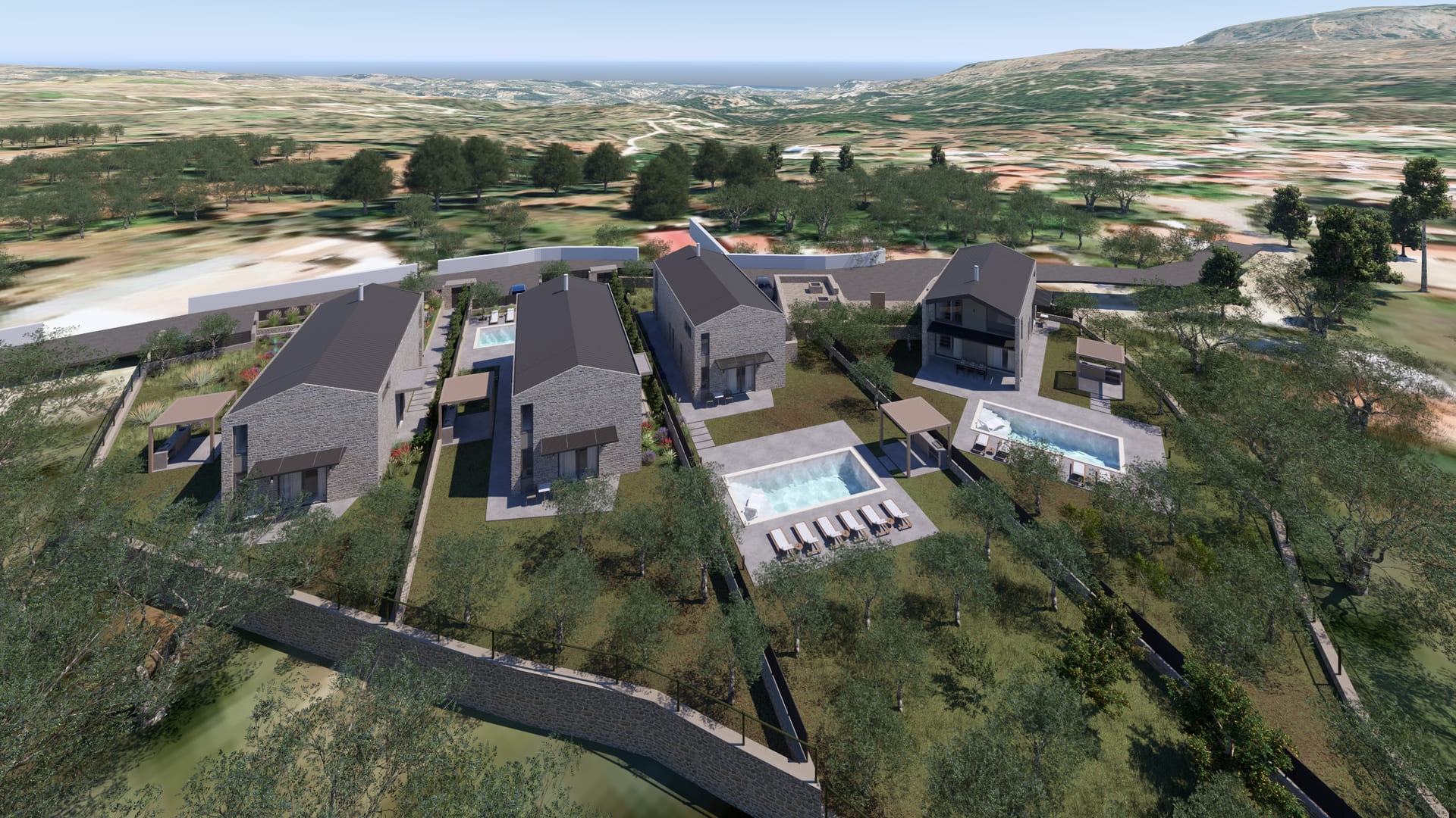 Nestled within the tranquil landscape of Xirosterni in Apokoronas, this project comprises four independent stone-built residences with attics and private pools. Set among olive trees on gently sloping terrain, the composition draws inspiration from the rural character of the area, reinterpreting the archetype of the Cretan house through a contemporary lens.