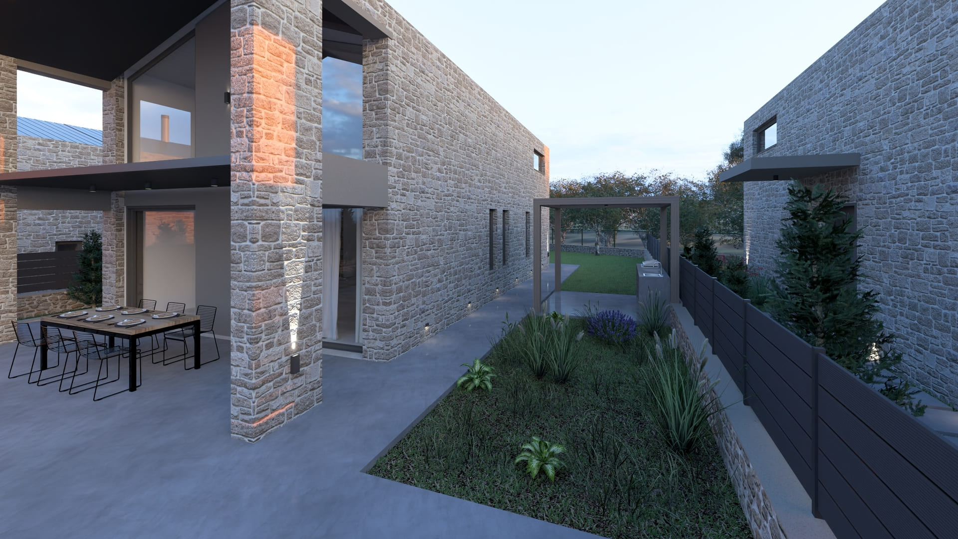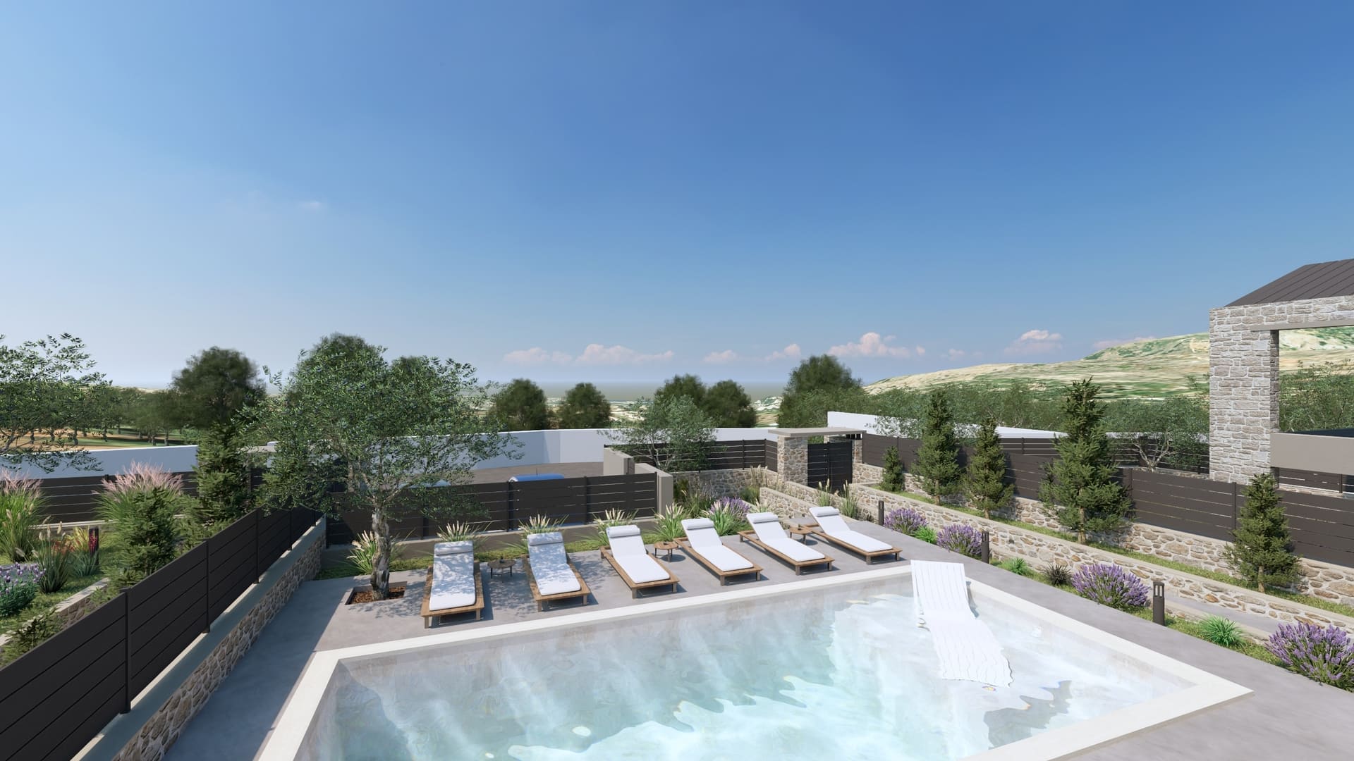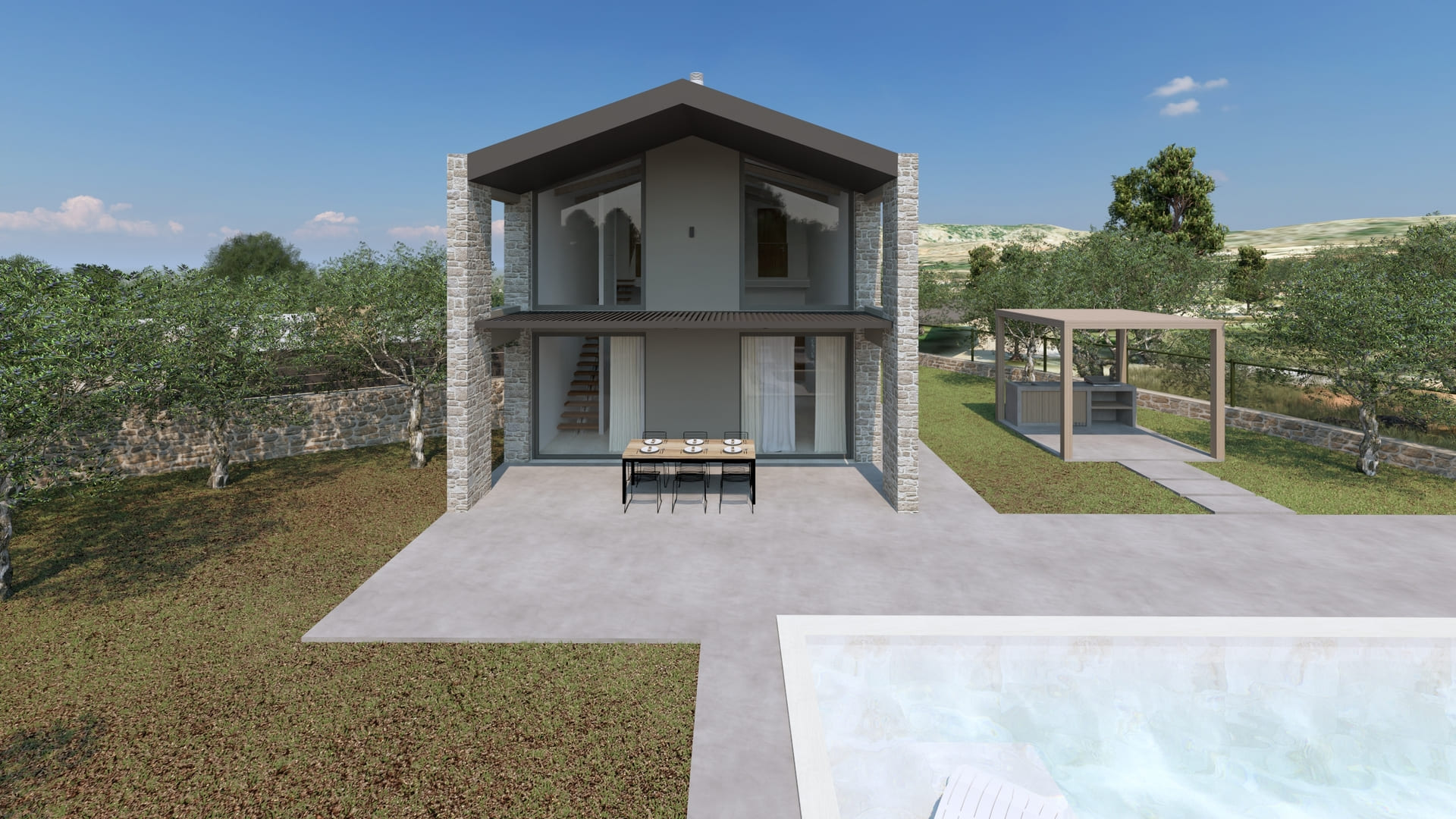 Nestled within the tranquil landscape of Xirosterni in Apokoronas, this project comprises four independent stone-built residences with attics and private pools. Set among olive trees on gently sloping terrain, the composition draws inspiration from the rural character of the area, reinterpreting the archetype of the Cretan house through a contemporary lens.